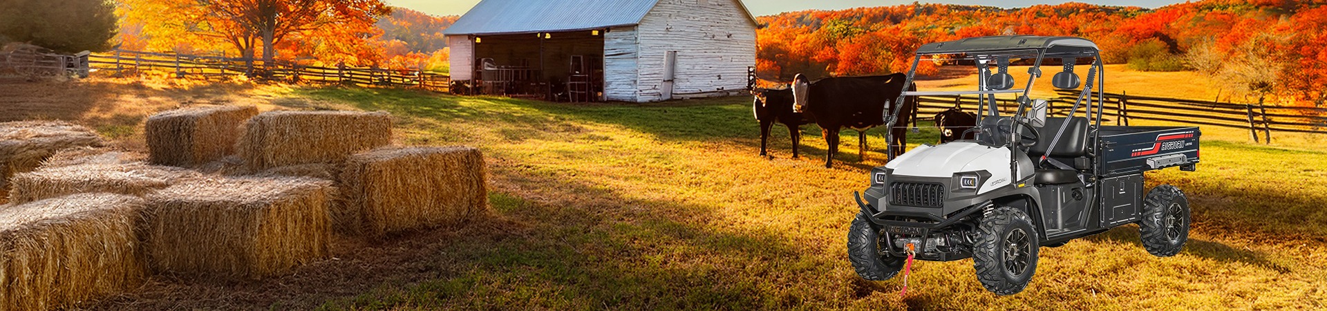 The Bighorn 450 Pro Max UTV is built to tackle the versatile demands of the farm, ranch, and job site. Designed for both power and utility, the Bighorn 450 Pro Max offers impressive hauling capacity with a dumpbed bed that can carry up to 882 lbs and measures 65 inches long by 48 inches wide. Remove the side panels to convert the bed into a flatbed for easy loading and unloading of bales of hay, large tools and equipment, and boxes of cargo. Activate the electric hydraulic lift to dump dirt, gravel, and game! Have a tool box or tools you want to keep away from the elements? Take advantage of the two side storage compartments directly underneath the driver and passenger side seats.